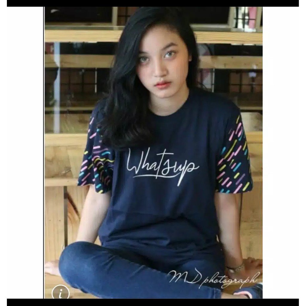 Kaos Distro Lengan Pendek Whatsup Polkadot Black/ Kaos Wanita Casual Premium | Shopee Indonesia