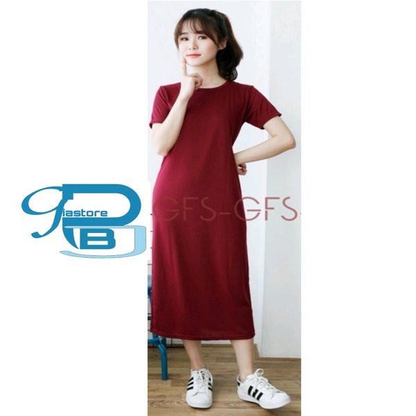 elsa plain maxi dress polos long dress span murah dress lengan pendek dress polos murah baju kerja | Shopee Indonesia