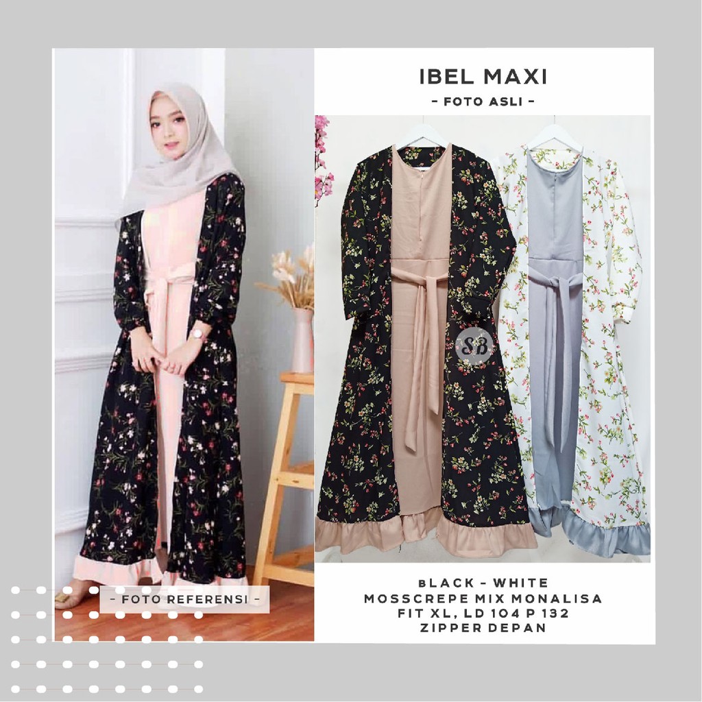 Maxi Dress hamil gamis kombinasi polos motif cantik online terbaru baju outer motif bunga Ibel Maxi | Shopee Indonesia