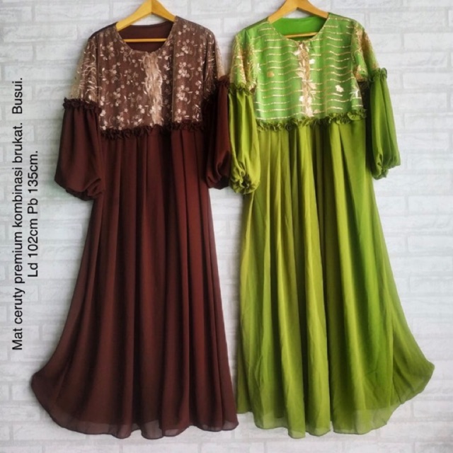 NEW BARU GAMBAR ASLI REAL PICT GAMIS SYAR’I CERUTY BRUKAT PREMIUM COKLAT HIJAU BUSUI PESTA CANTIK | Shopee Indonesia