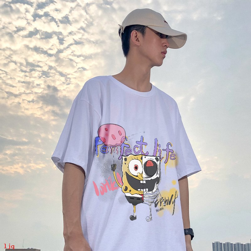 Yi Xian musim panas merek pasang baru tren hip-hop kartun leher bulat lengan pendek t-shirt pria Hon | Shopee Indonesia