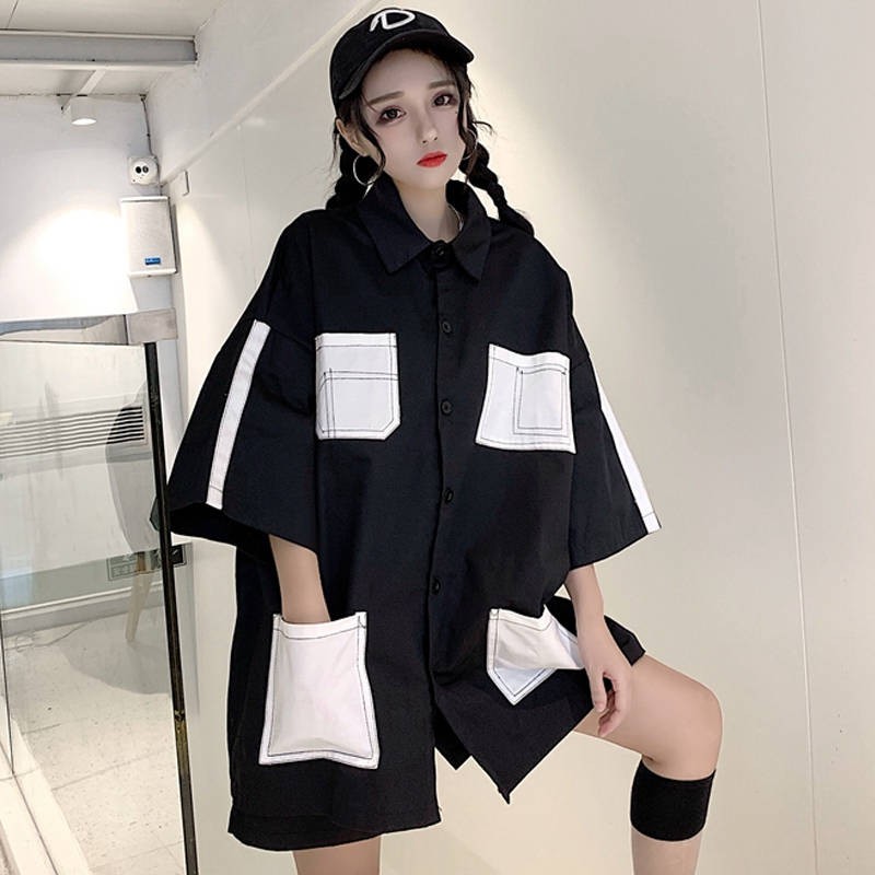 Baju baru wanita pelajar Korea longgar bf Harajuku gaya hip hop pakaian baju kemeja baju lengan pendek | Shopee Malaysia