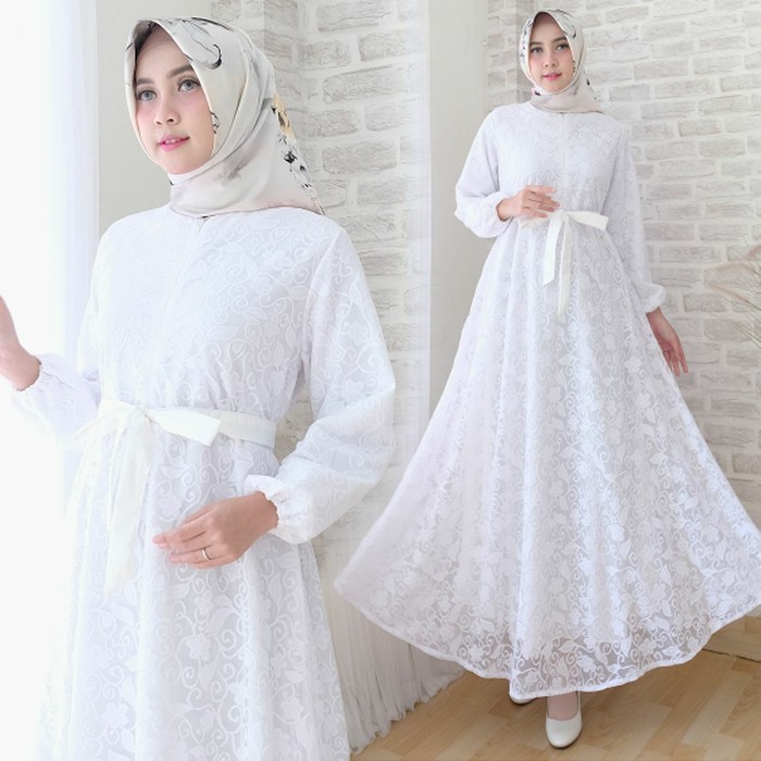 Gaya Gamis Pesta / Gamis Brukat White / Gamis Kebaya Putih /Gamis Kondangan Bergaransi | Shopee Indonesia