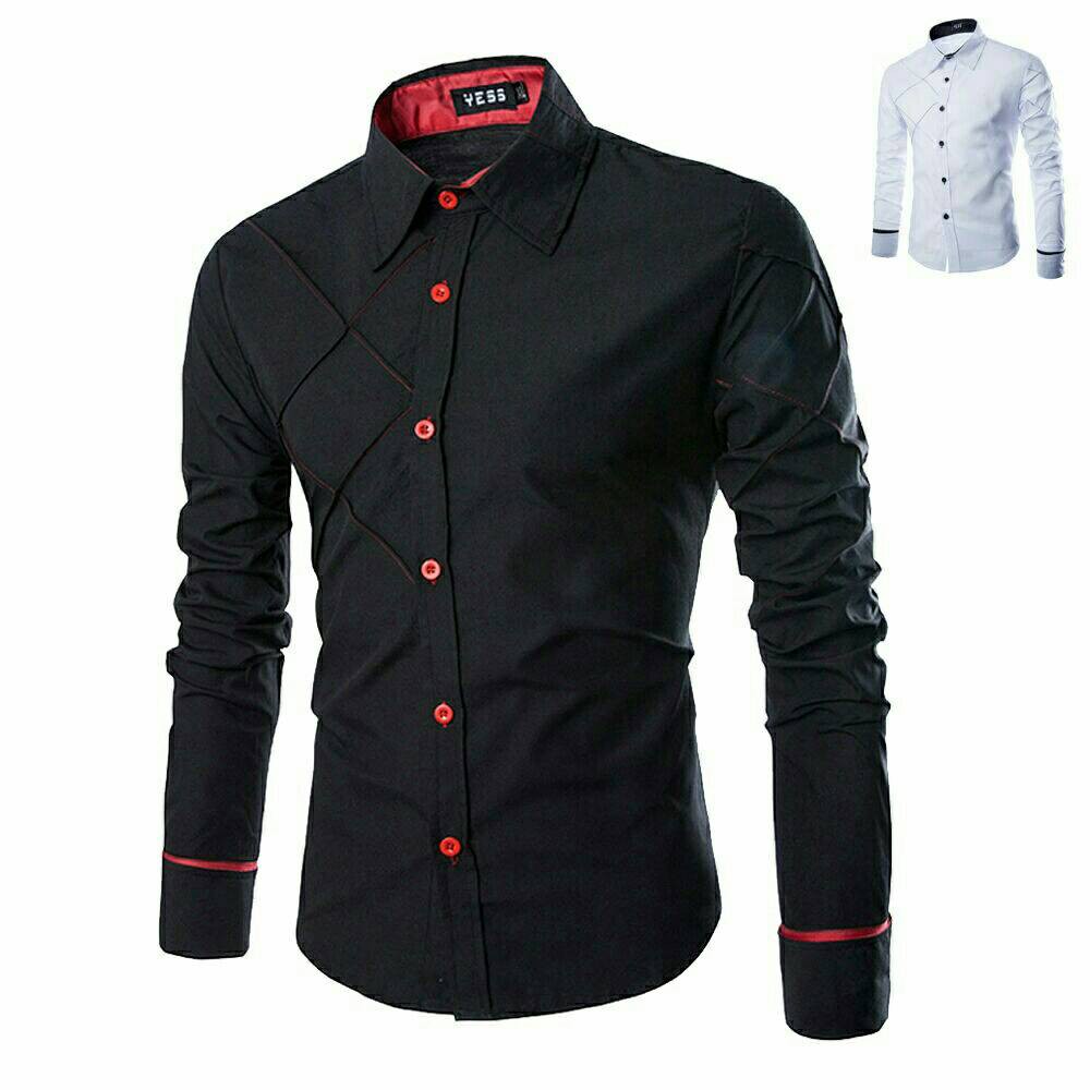 Gambar Baju Kemeja Pria Lengan Panjang- Baju Kemeja Pria Lengan Panjang Kemeja Slim Fit Warna Hitam Kancing Putih Baju Kemeja Pria - D… di 2020 | Kemeja pria, Kemeja, Pria