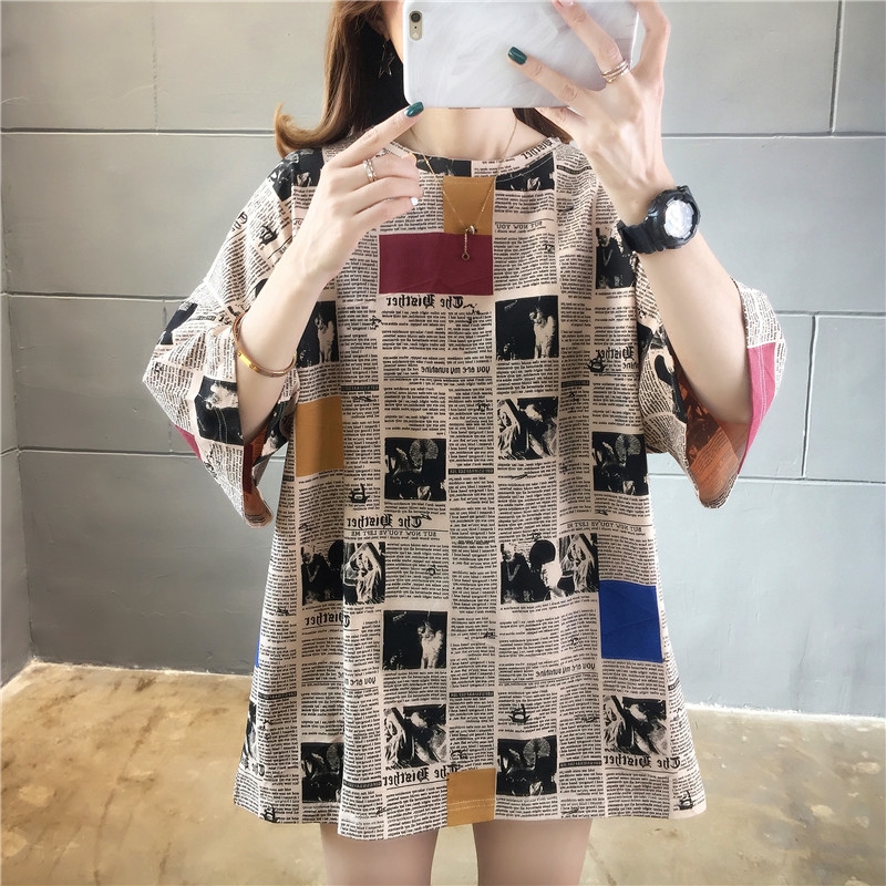 Mid-panjang lengan pendek in wanita pasang jaring merah bau aneh longgar baju keren wanita 2020 musi | Shopee Indonesia