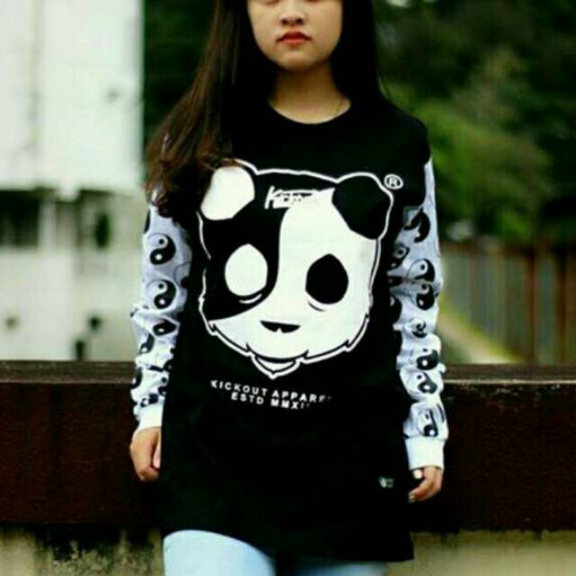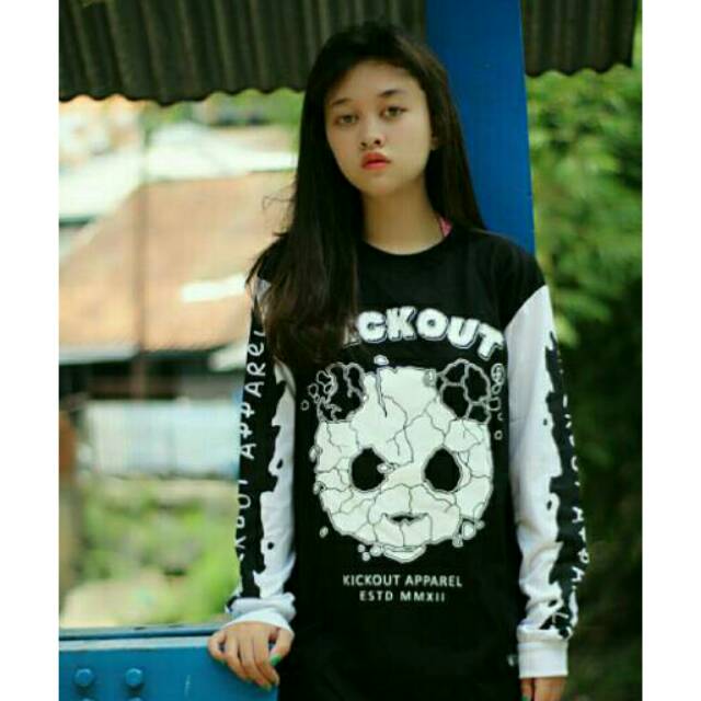 kaos distro merk kickout - kaos longsleeve gambar panda - kaos cewek | Shopee Indonesia