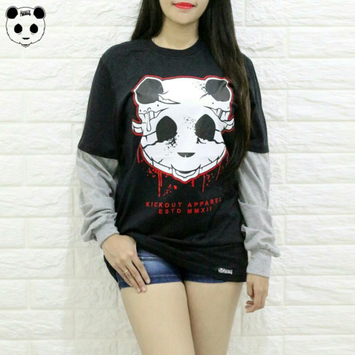 Kaos Distro Kickout Apparel Panda Layer Hitam Abu/ Kaos Lengan Panjang | Shopee Indonesia