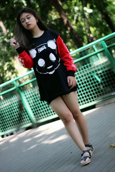 Kaos Distro Kickout Panda Merah Hitam/ Kaos Panjang Wanita Casual | Shopee Indonesia