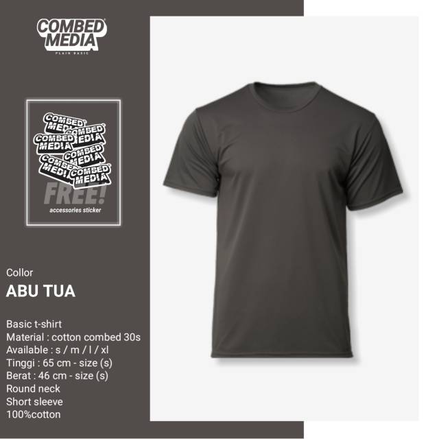 Combed Media Baju Kaos Polos Abu Tua Cotton Combed 30s | Shopee Indonesia