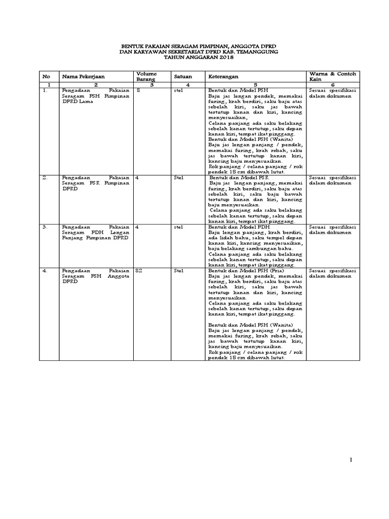 Spesifikasi Teknis Pakaian 2018