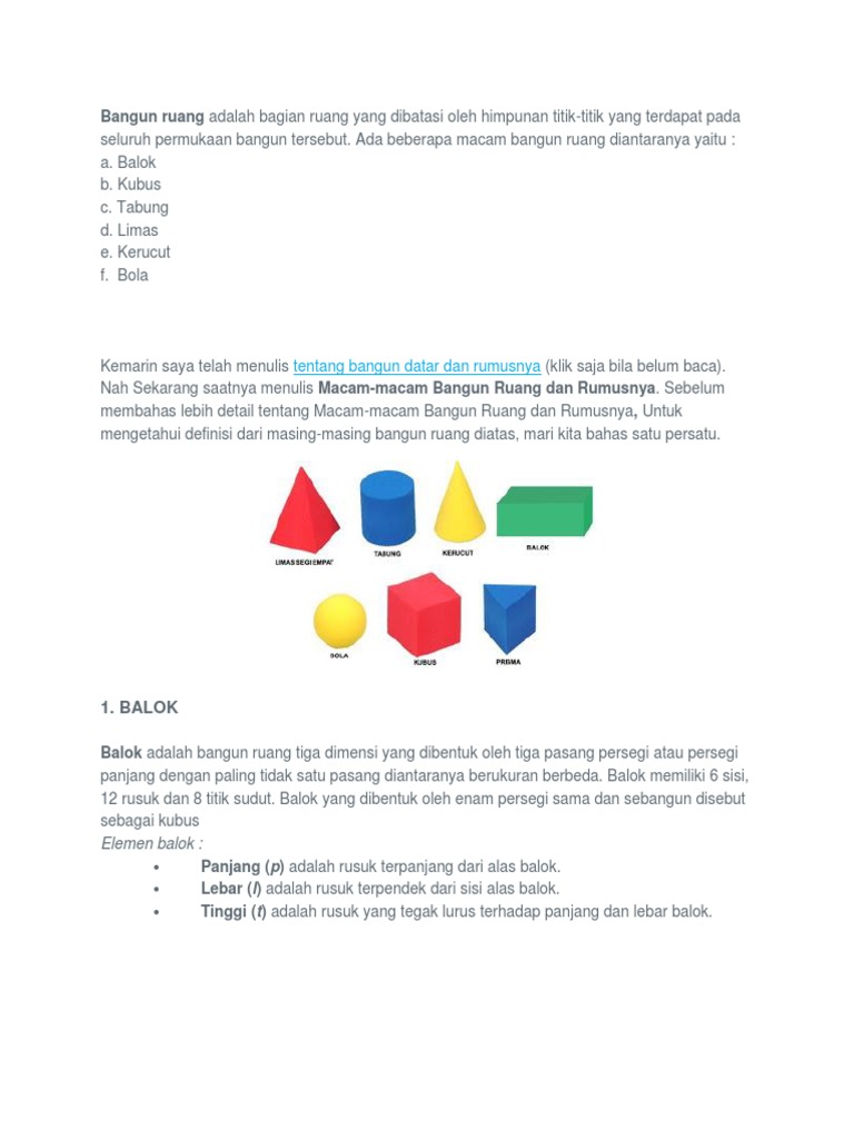 PDF) Ciri-ciri dan Rumus Bangun Datar dan Bangun Ruang | Lotus Matsuda - Academia.edu