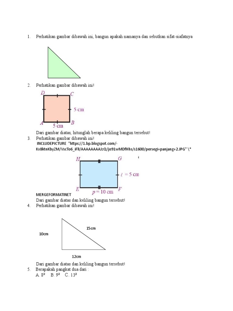 Bangun datar beserta sifat sifatnya,gambar,rumus keliling,dan rumus luas - Brainly.co.id