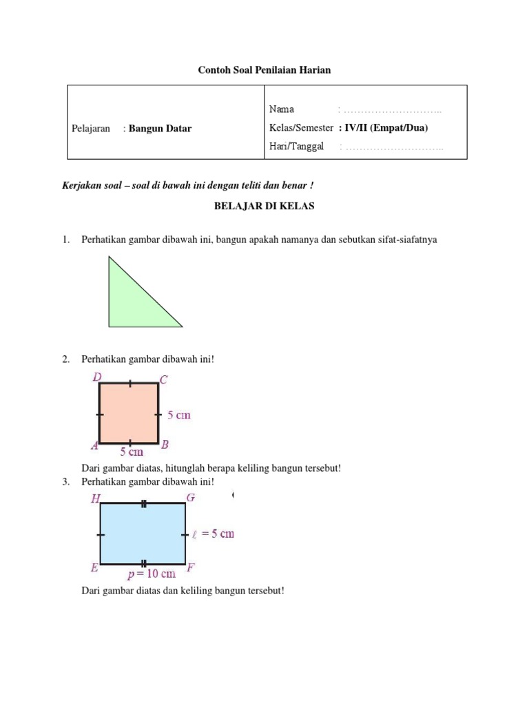 Soal Matematika Kelas 2 SD Bab 6 Bangun Datar Dan Kunci Jawaban - Bimbel Brilian