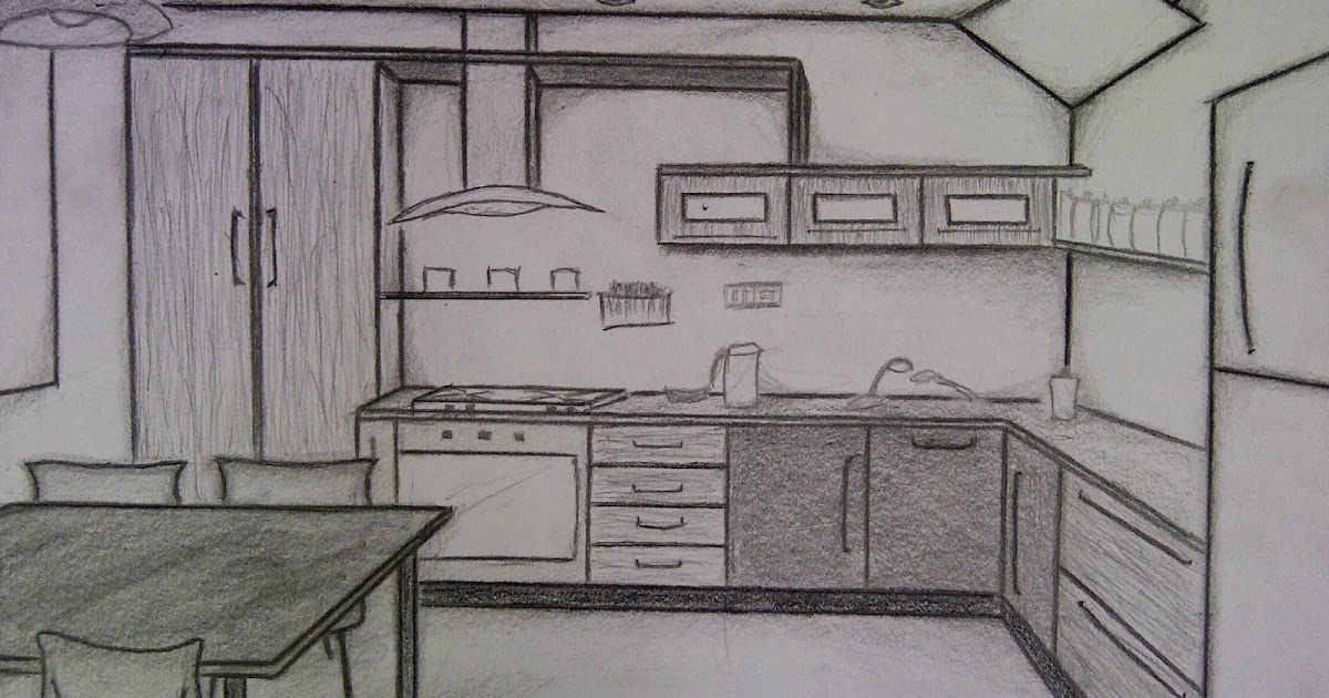 Kreatif ! Proses Pembuatan sketsa dapur dengan pensil - YouTube