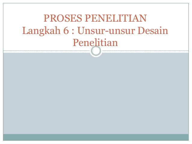 PROSES PENELITIAN Langkah 6 : Unsur-unsur Desain Penelitian