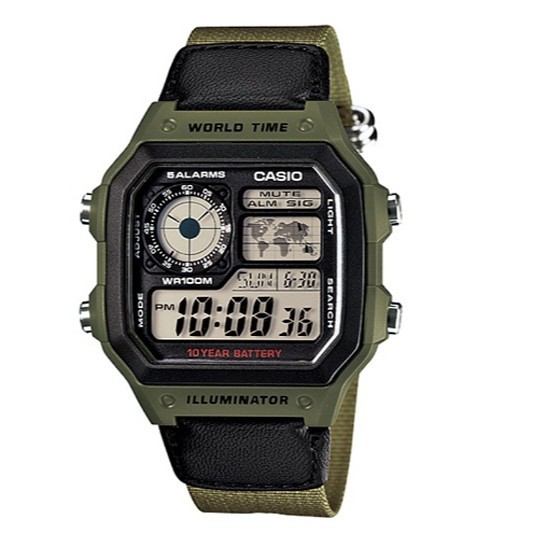 Casio Ae-1200whb - 3b Jam Tangan Digital Dial Bulat Gambar Peta Dunia+strap Kanvas (nap Taiwan) | Shopee Indonesia