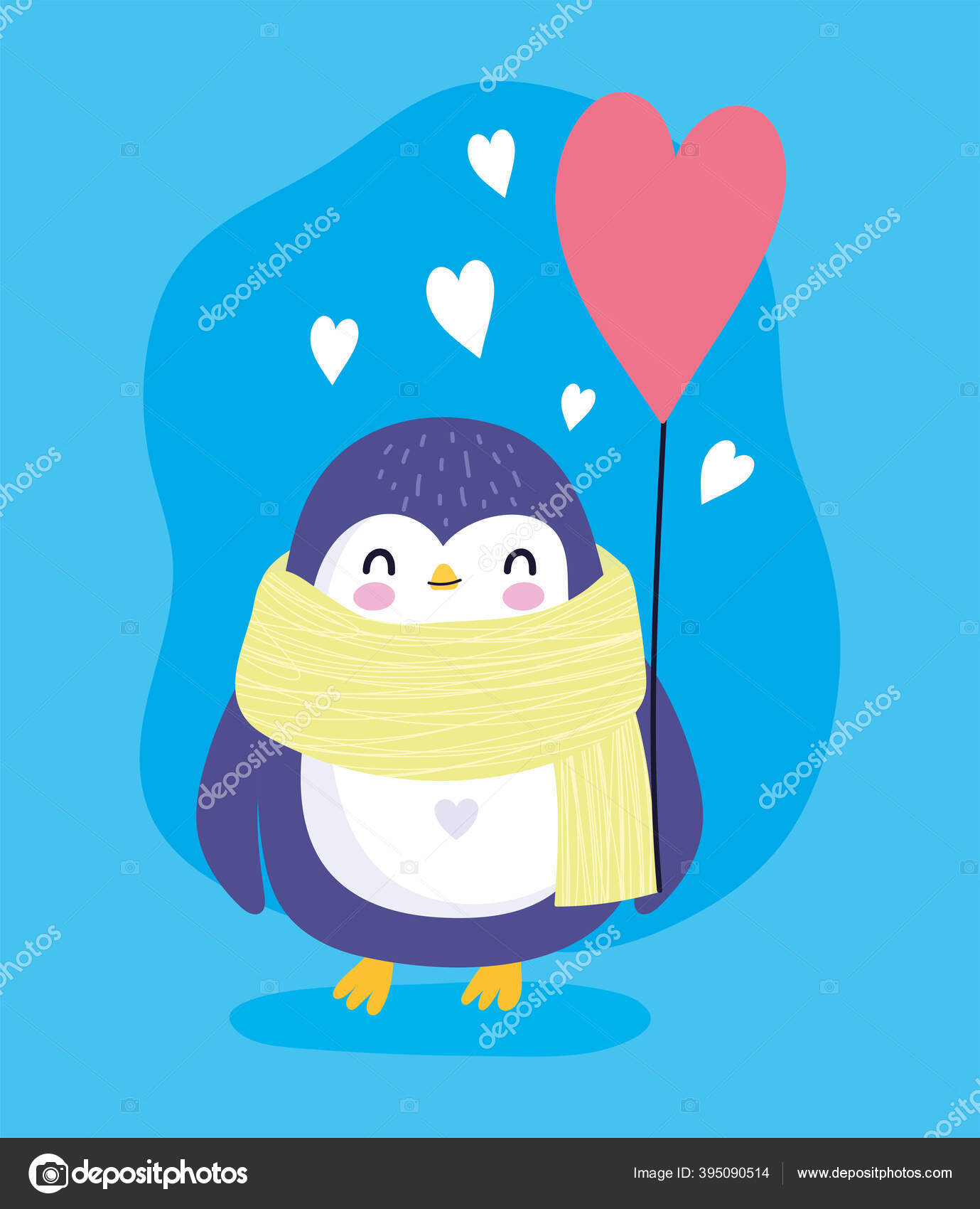 Penguin dengan syal dan balon jantung antarktik kartun hewan burung satwa liar — Stok Vektor © stockgiu #395090514