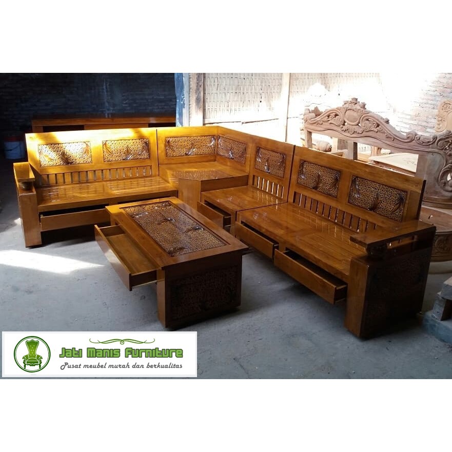 Kursi tamu sudut minimalis + laci, kayu jati premium | Shopee Indonesia