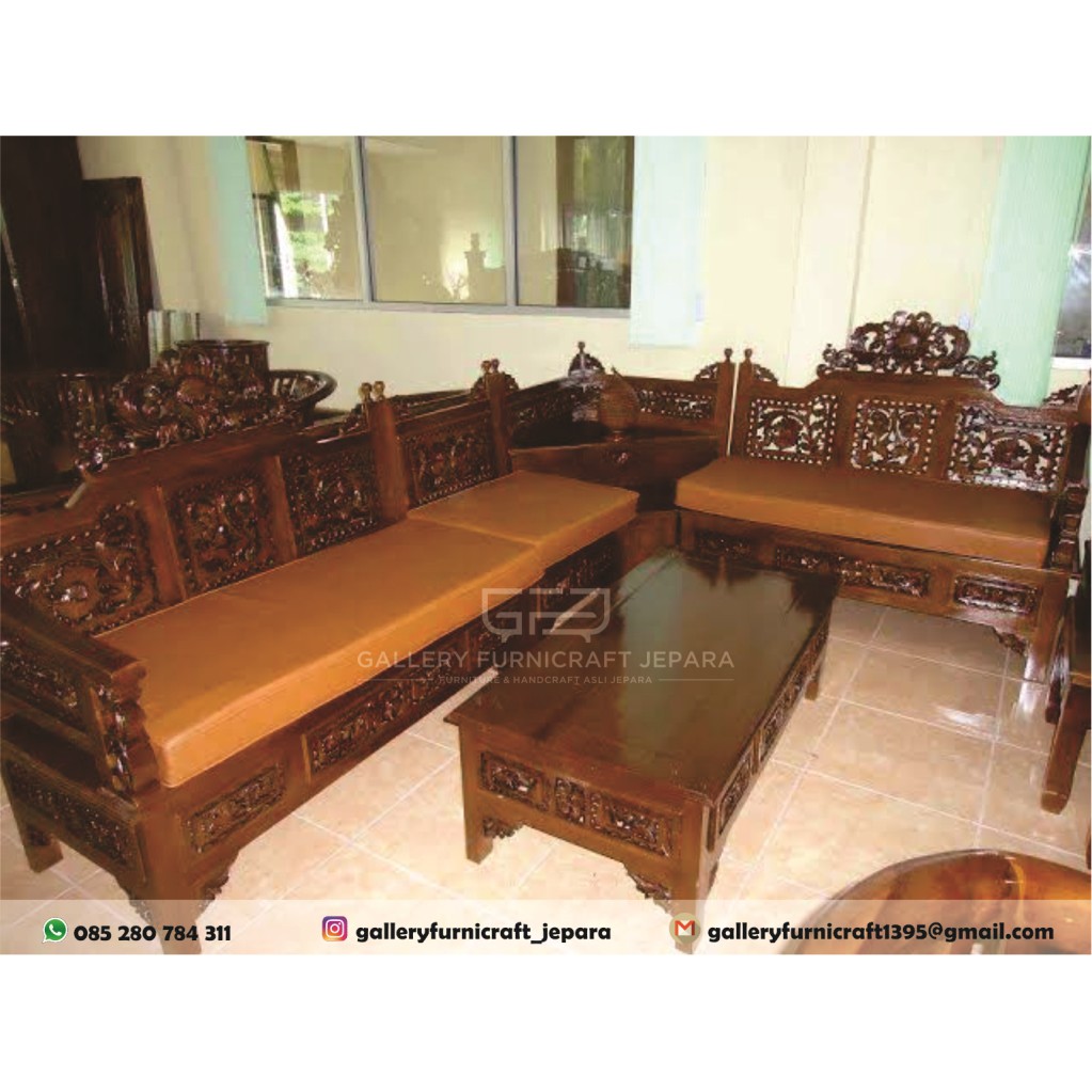 Kursi Tamu Sudut Ukiran Kayu Jati | Mega Furniture