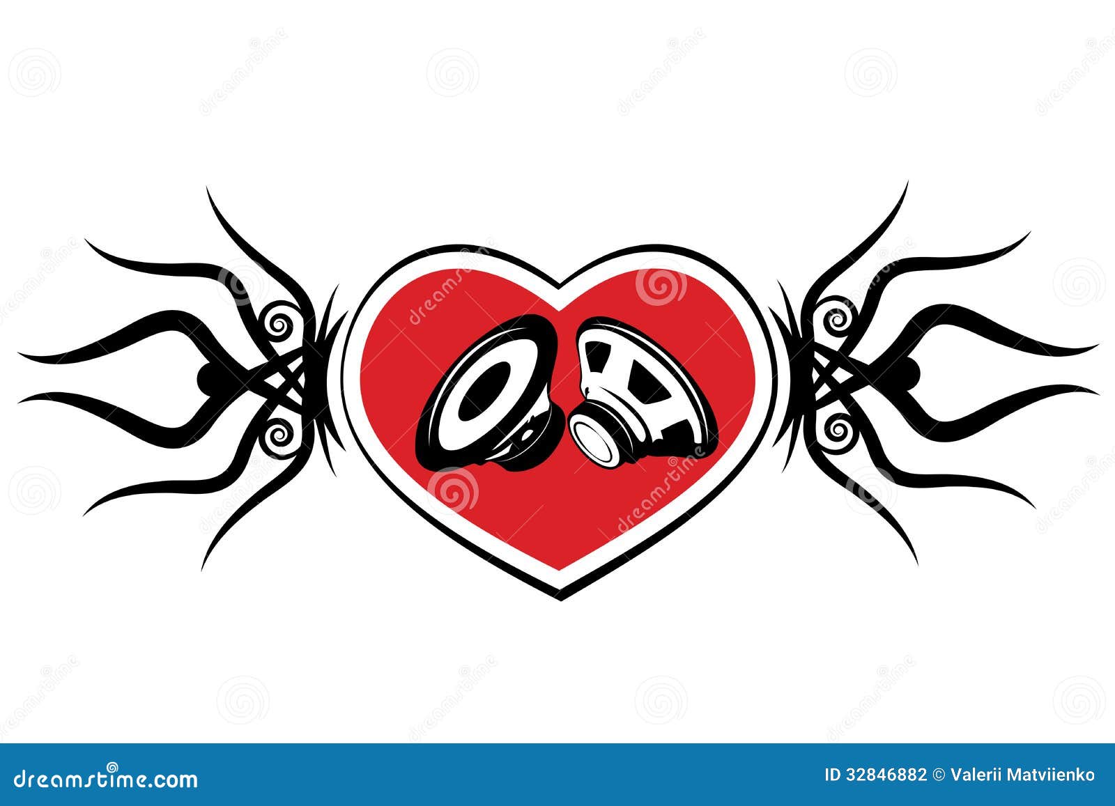 Heart and speaker. Tattoo stock vector. Illustration of beautiful - 32846882