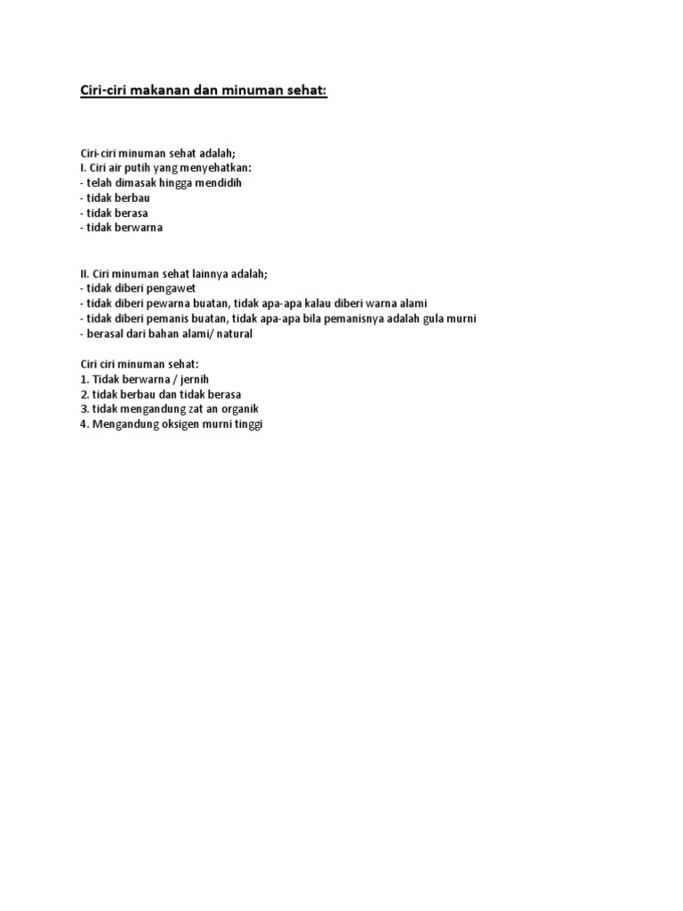 Ciri-Ciri Makanan Dan Minuman Sehat