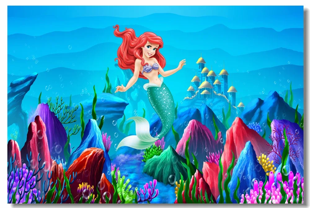 Custom Canvas Wall Mural Mermaid Princess Ariel Poster Little Mermaid Wallpaper Cartoon Wall Sticker Kids Room Decoration #0882#|Wall Stickers| - AliExpress