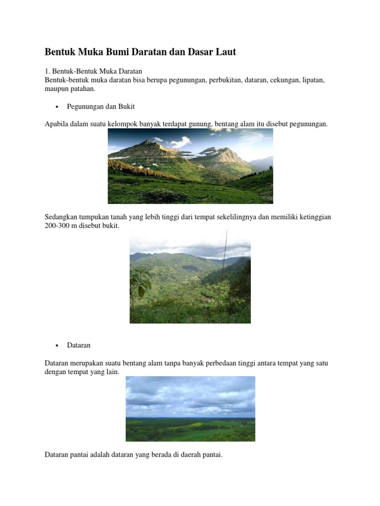Bentuk Muka Bumi Daratan Dan Dasar Laut