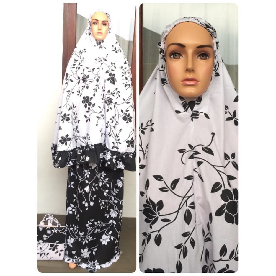 Mukena Cantik 2017 Katun Jepang Bella Rose hitam putih | Shopee Indonesia