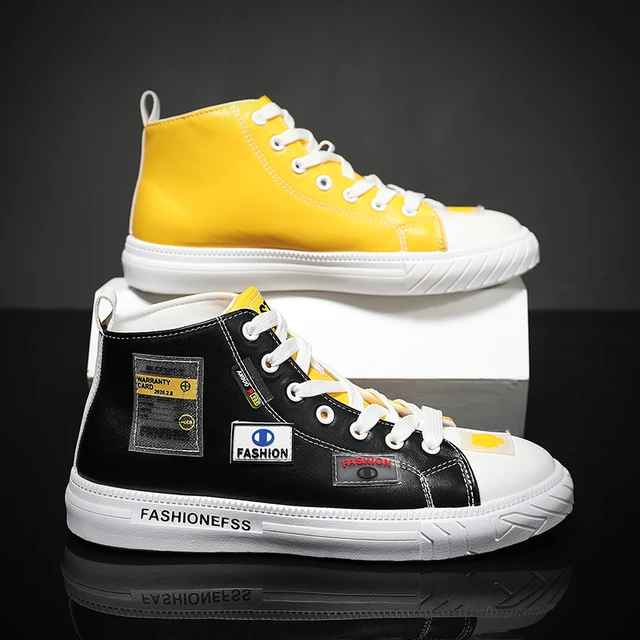 Pria Vulcanized Sepatu Berjalan Sepatu Musim Semi Musim Gugur Kulit PU Klasik Tinggi Top Dicetak Sepatu Kasual Pria Sepatu Bot Buty Meskie|Pria Sepatu Vulkanisir| - AliExpress