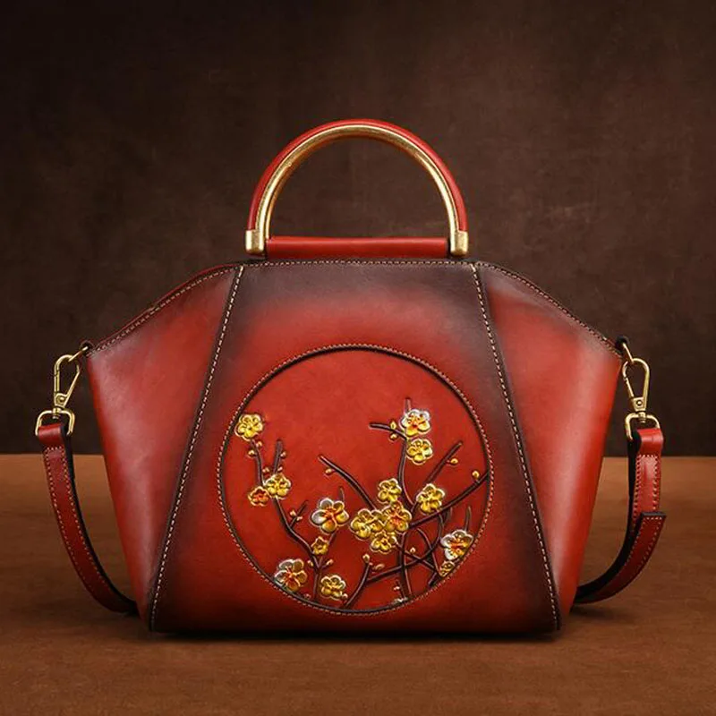 Wanita Cross Tubuh Bahu Tas Kulit Asli Gaya Cina Vintage Tote Tas Tangan Kulit Sapi Timbul Messenger Tas Ransel Baru|Top-Handle Tas| - AliExpress