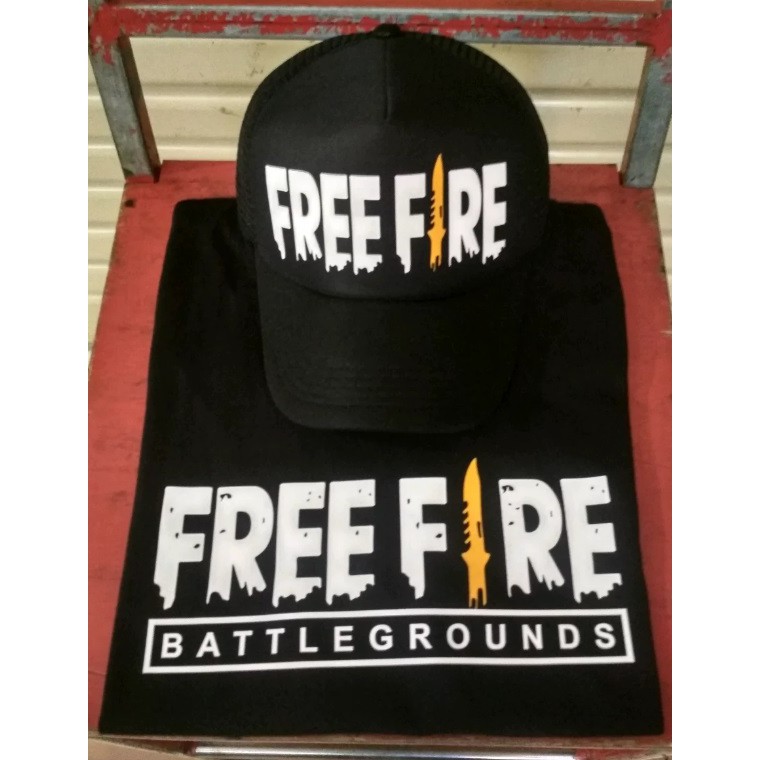 FREE FIRE BAJU TSHIRT FREEFIRE BATTLEGROUNDS PAKET TOPI KAOS GAME GARENA KAOS HITAM LENGAN PENDEK | Shopee Indonesia