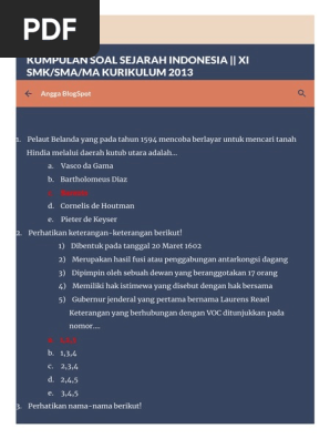 Kumpulan Soal Sejarah Indonesia __ Xi Smk_sma_ma Kurikulum 2013