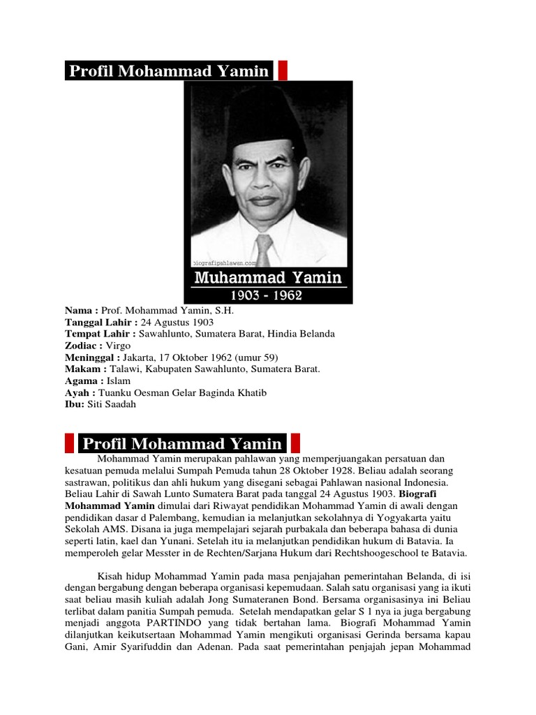 Mohammad Yamin Biografi Mohammad Yamin: Seorang Sejarahwan, Sastrawan, Ahli Hukum Dan Politikus Nama : Prof. Mohammad Yamin, S… | Tokoh sejarah, Sejarah, Sastrawan