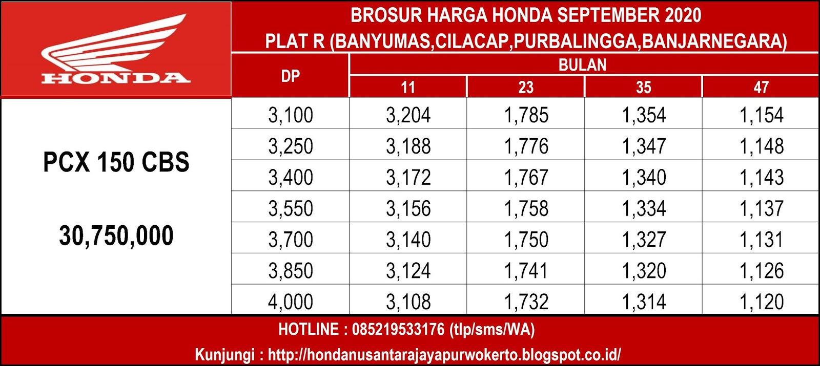 Brosur Kredit Motor Honda Banjarnegara 2020 | Motor Honda Jawa Tengah