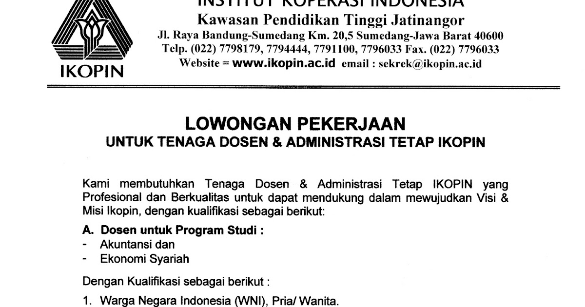Lowongan Dosen dan Tenaga Administrasi IKOPIN Terbaru 2016, Cek Yuk! - Harian Blora