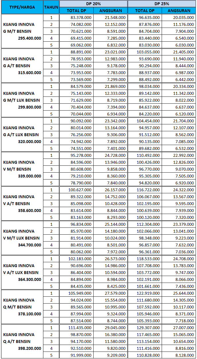Simulasi Kredit Toyota Innova - Promo DP Harga & Cicilan Murah - Cermati.com