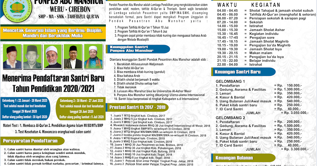 Brosur Pendaftaran Santri / Siswa Baru Pondok Pesantren Abu Manshur Tahun 2020 ~ Yayasan Ponpes Abu Manshur