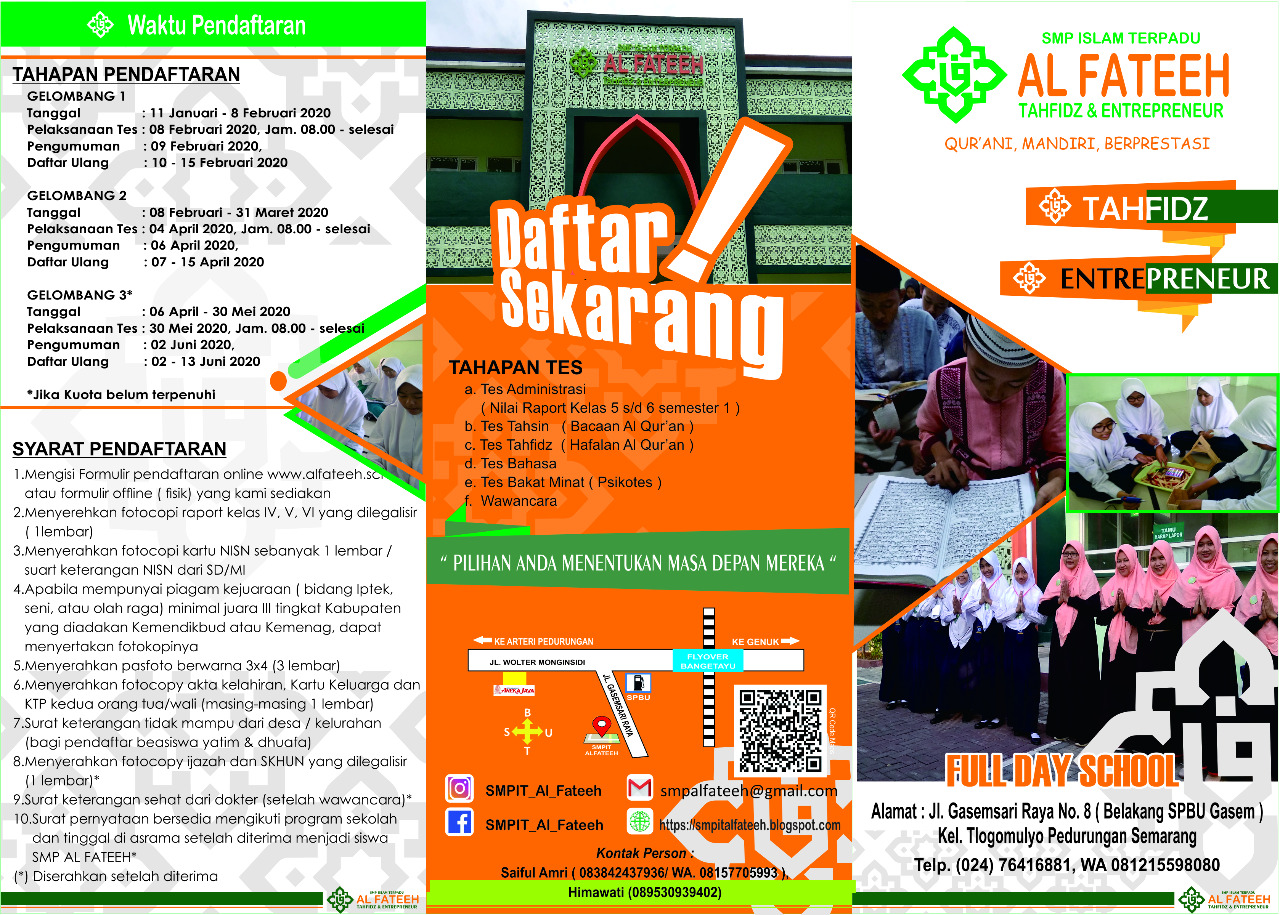 Sekolah Tahfidz & Entrepreneur Semarang | (024) 76416881 / 081215598080: Brosur Informasi PPDB SMPIT AL FATEEH Semarang Tahun Ajaran 2020/2021
