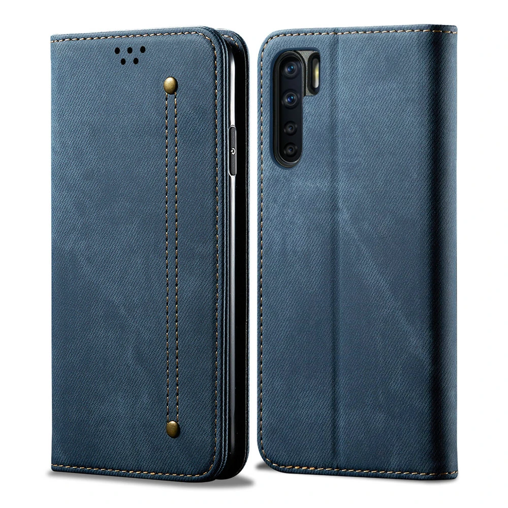 For OPPO A91 F15 Protective Case Flip Cover for OPPO F15 Case Luxury Solid Leather Denim Wallet for OPPO A 91 F 15 15F 91A Fudna|Wallet Cases| - AliExpress