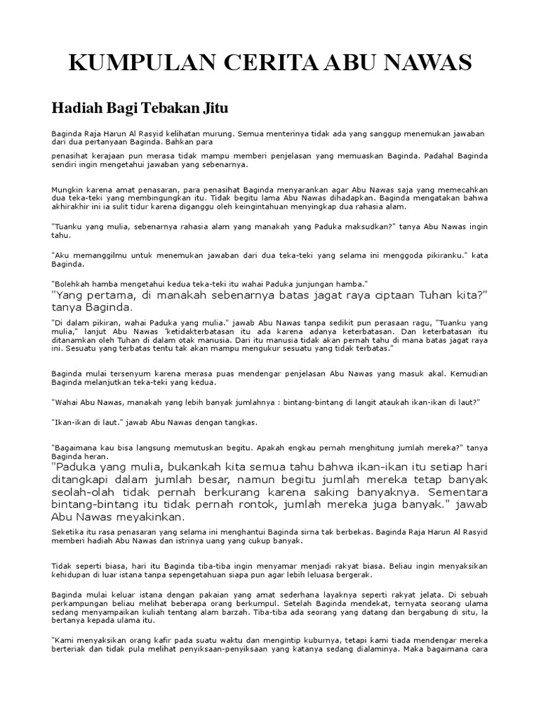 DOC) Hikayat Abu Nawas: Pesan Bagi Hakim | desy nur - Academia.edu