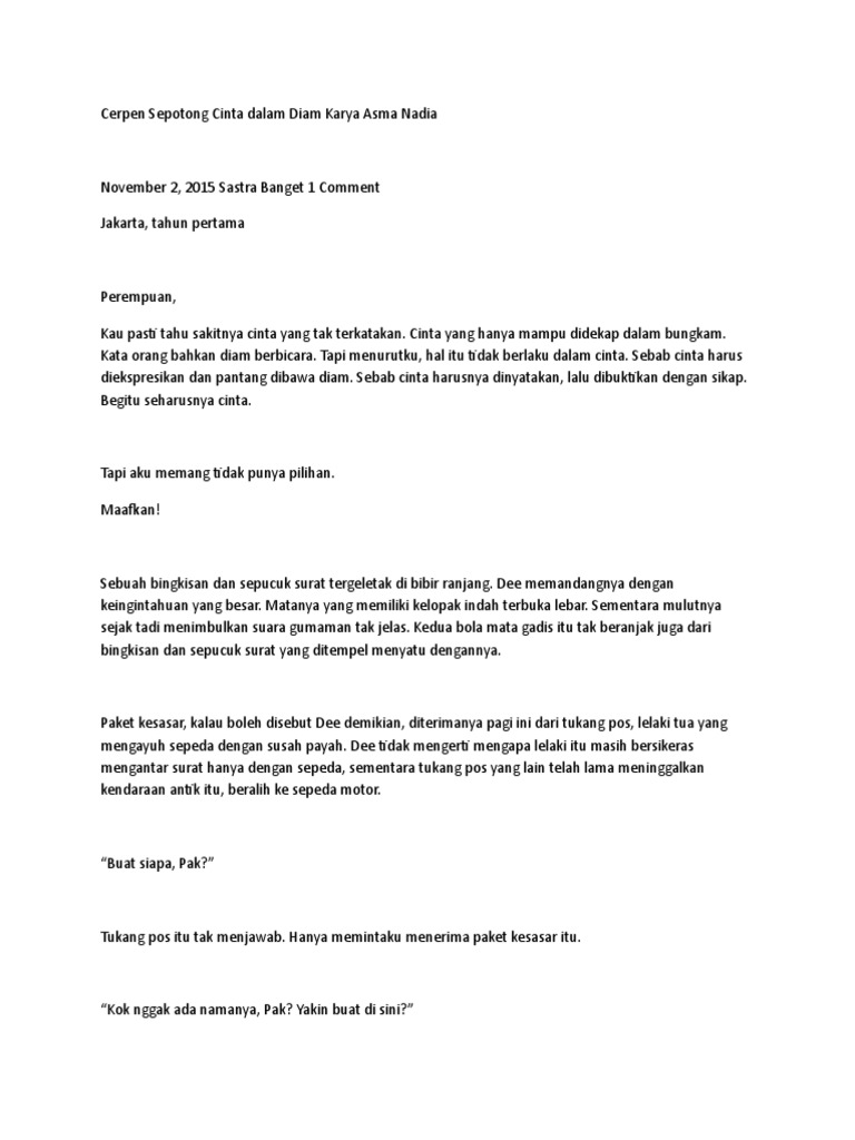 DOC) Cerpen Sepotong Cinta dalam Diam | Helmiya Helmiya - Academia.edu