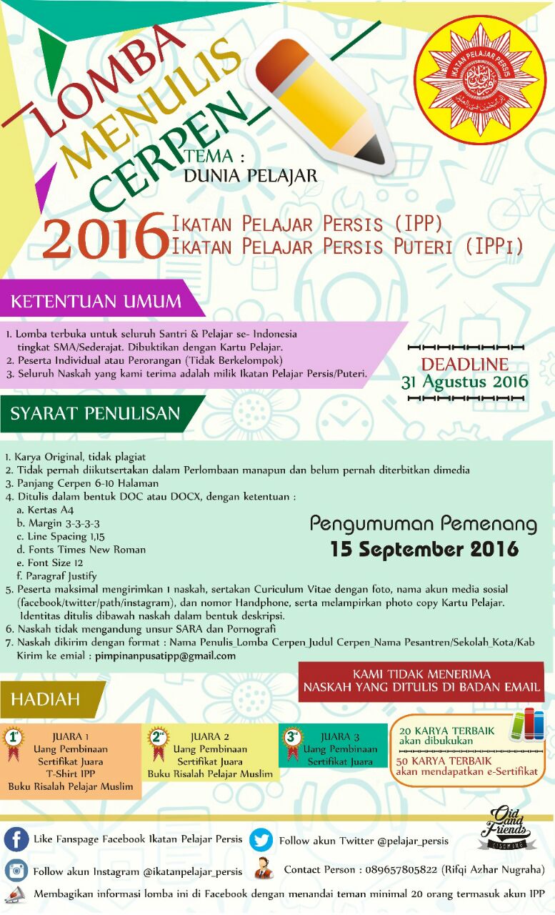 Ketentuan Lomba Cerpen tingkat Nasional - PP Ikatan Pelajar Persis