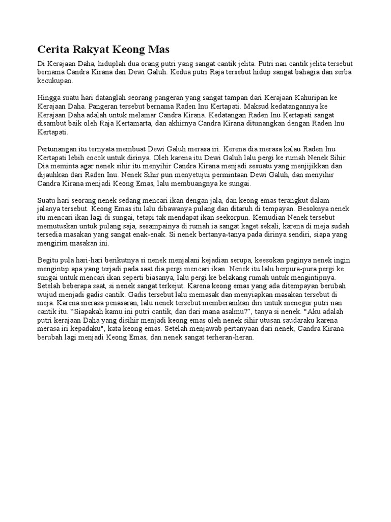 Contoh Narrative Text Keong Mas Lengkap Dengan Artinya