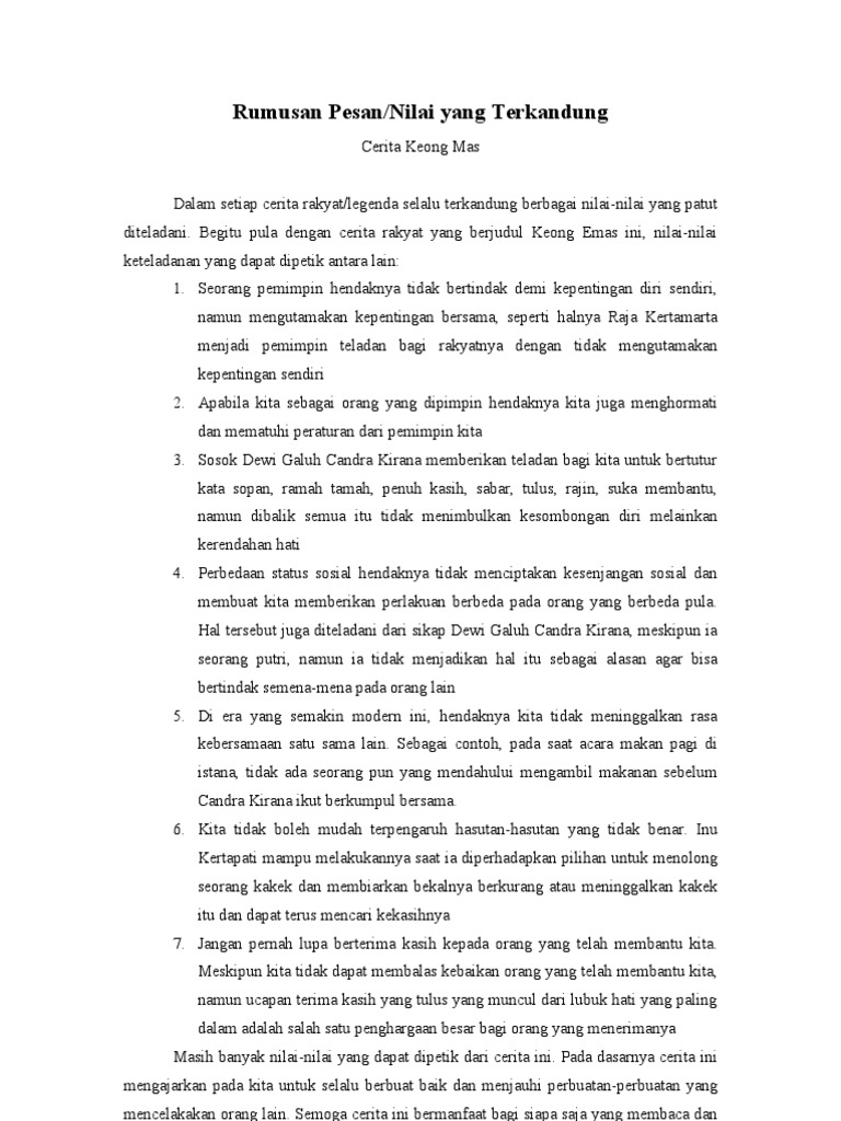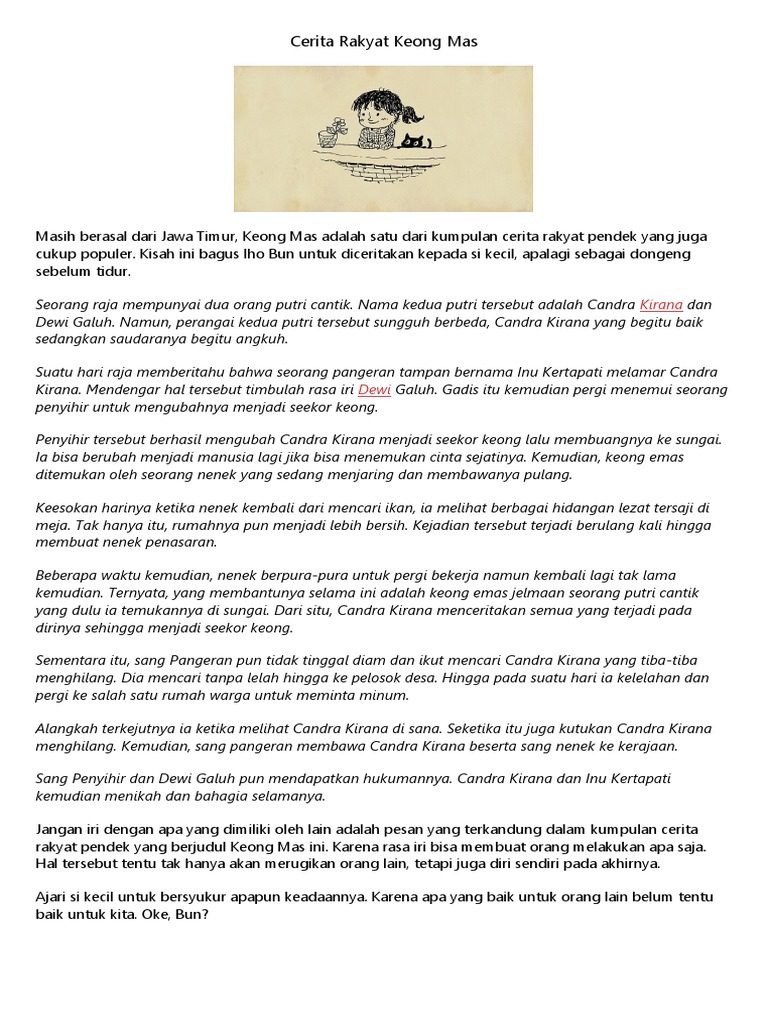 Cerita Keong Mas Dalam Bahasa Indonesia