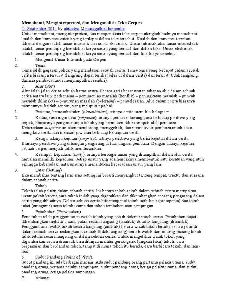 Contoh Soal Langkah-langkah membuat abstraksi teks cerita pendek | ezy blog