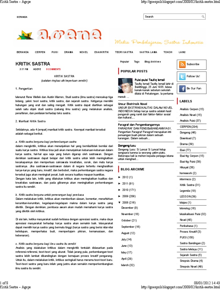 Kritik Sastra ~ Agepe