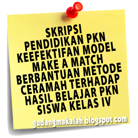 SKRIPSI PENDIDIKAN PKN KEEFEKTIFAN MODEL MAKE A MATCH BERBANTUAN METODE CERAMAH TERHADAP HASIL BELAJAR PKN SISWA KELAS IV - GUDANGMAKALAH