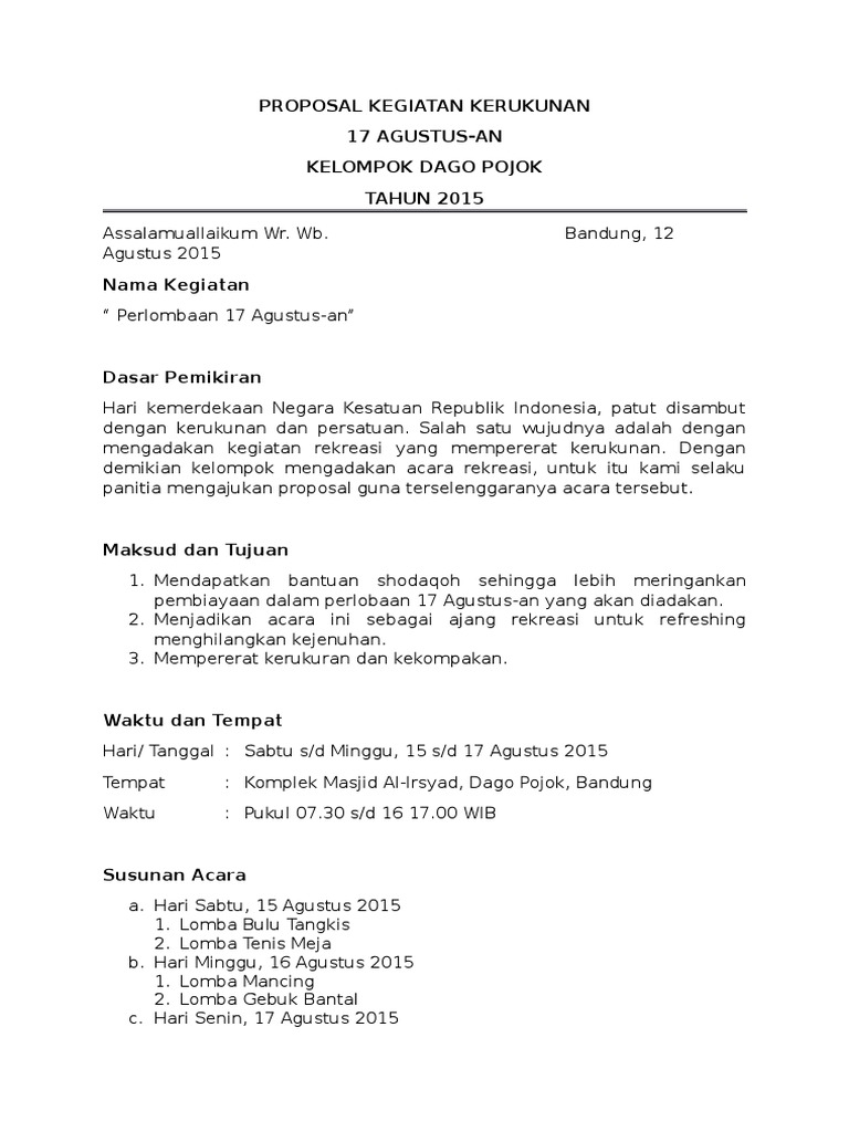 DOC) Proposal Pengajuan Dana untuk acara 17 Agustus 2014 RW 02 | Raka Ardi - Academia.edu