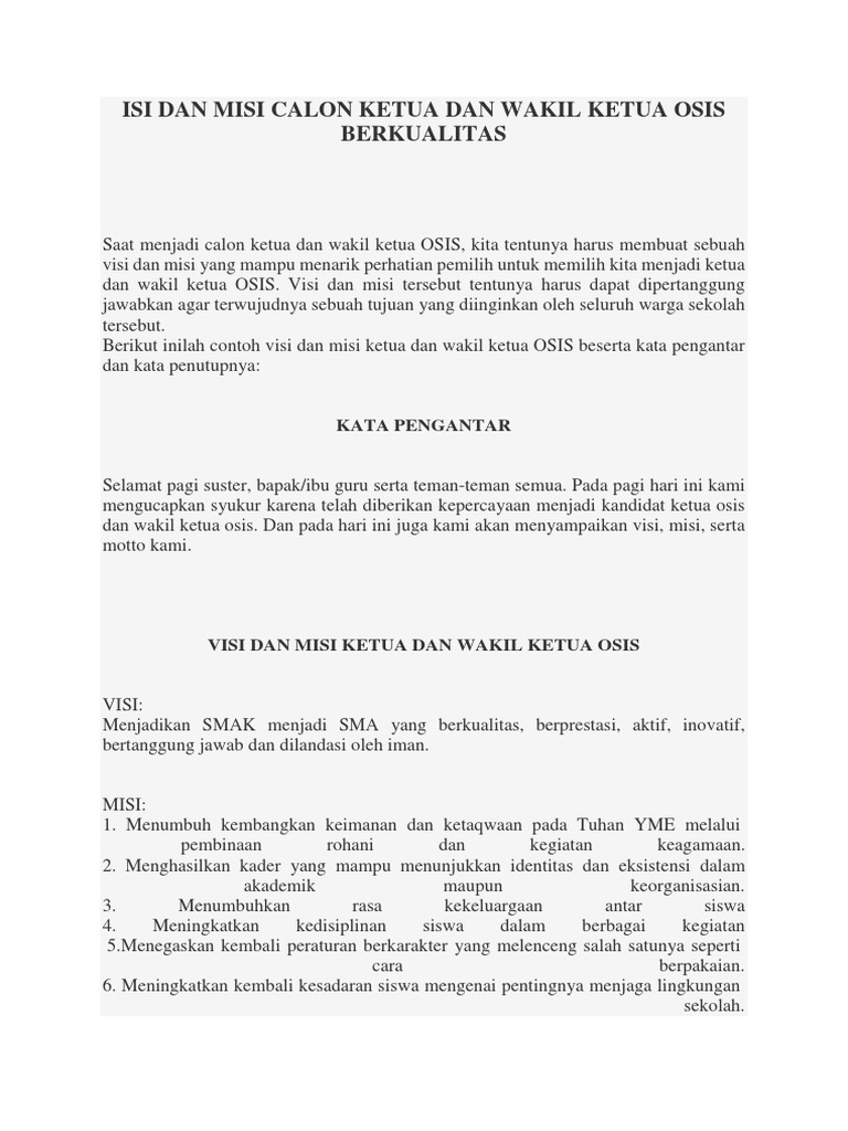 Visi Misi Calon Ketua Osis Smk - Guru Ilmu Sosial
