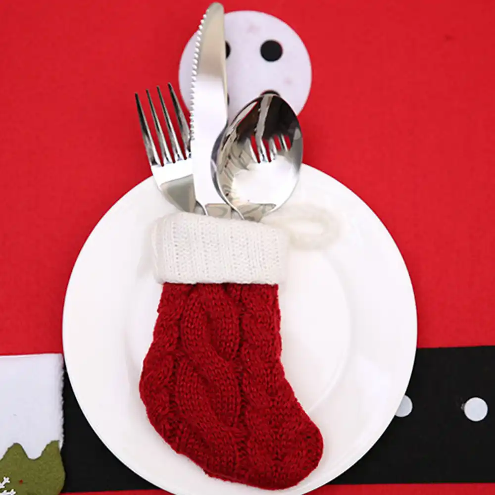5pcs Red Knitted Christmas Stockings Socks Cutlery Holder Knife Fork Cover Bags Christmas Decoration for Home Navidad Natal Q4|Stockings & Gift Holders| - AliExpress